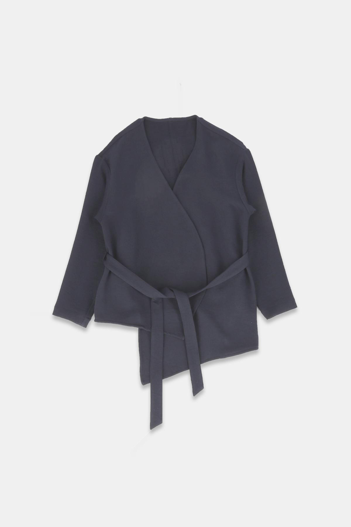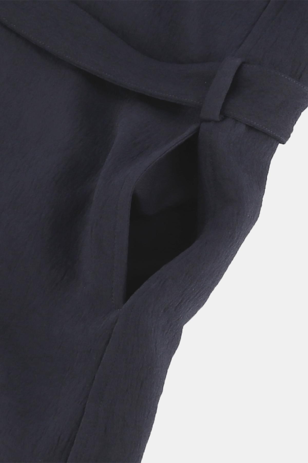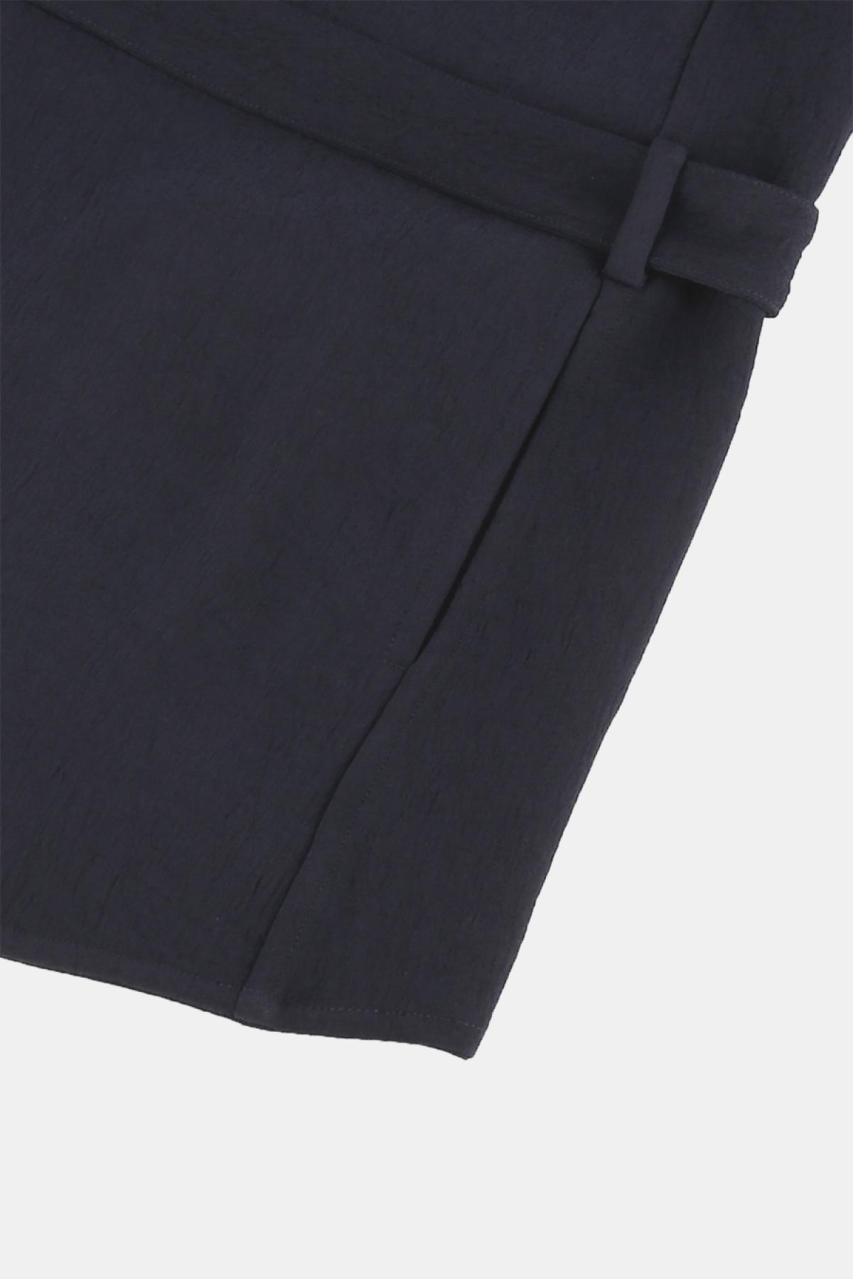 ファッション性の高い左右非対称のアシンメトリーデザイン、ボディーと共素材で作られたベルトは、前で結ぶのはもちろん、後側で結んでアクセントにすることも出来ます。