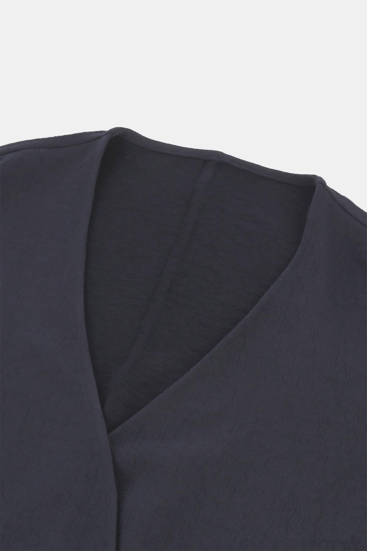 表面の細かい凹凸と、しなやかでドレープ性の高さが特徴のアンティークジョーゼットを使用したガウンジャケット。