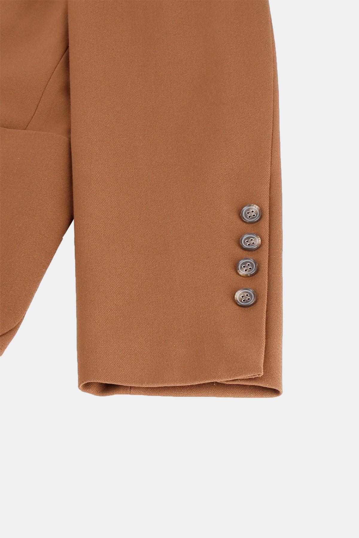 肩付けの位置を腕側にずらしたドロップショルダー、ラペルやポケットを大きめにデザインし、ヴィンテージ感を演出しているのも、この商品の特徴となります。