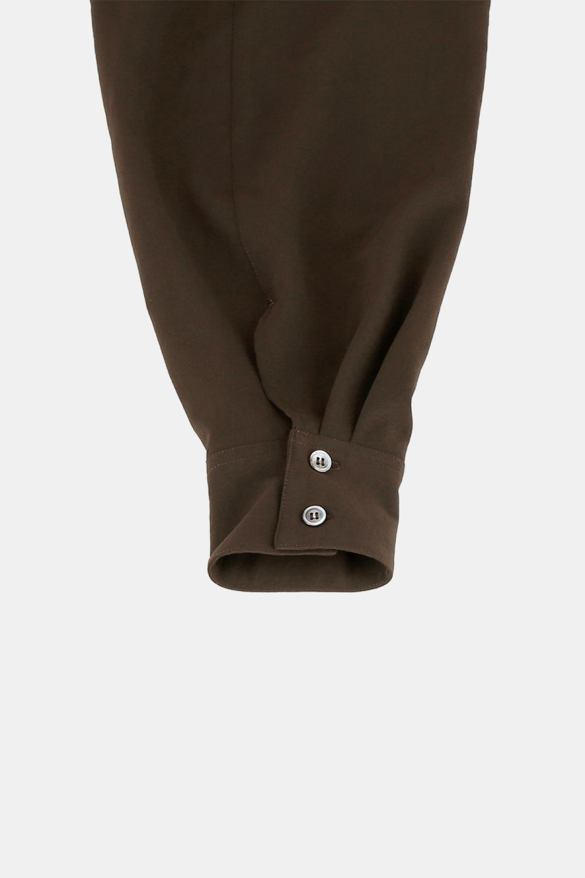 生地に使用されたドライツイルワッシャーは、シャリ感のあるドライな肌ざわりとドレープ感を併せ持ち、優雅でエアリーなシルエットを演出してくれます。