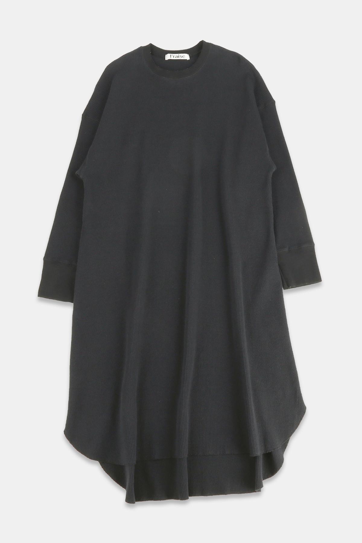 伸縮性が高く、着心地の良さも魅力のスーパーストレッチベアワッフルを使用したリラックスワンピース。