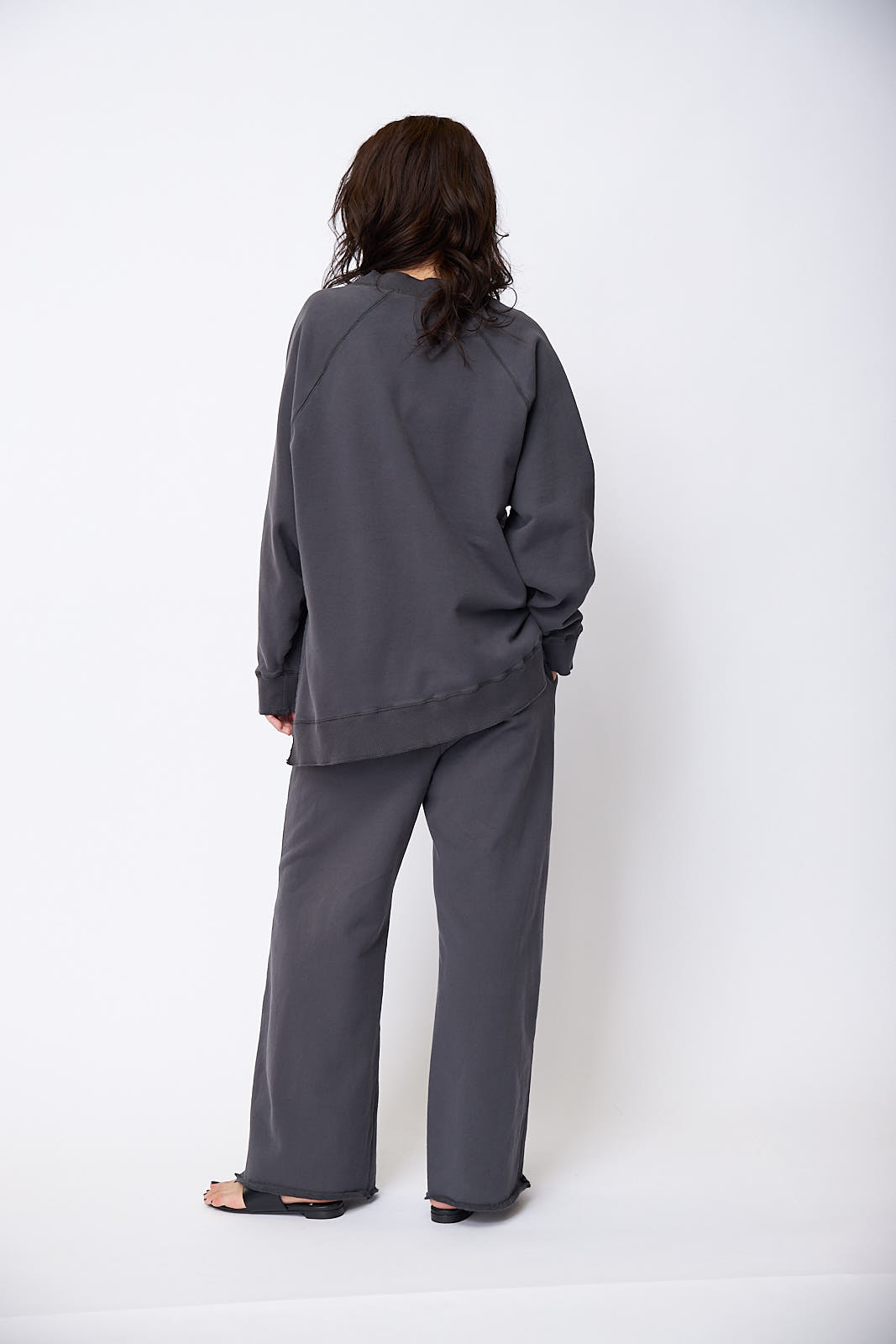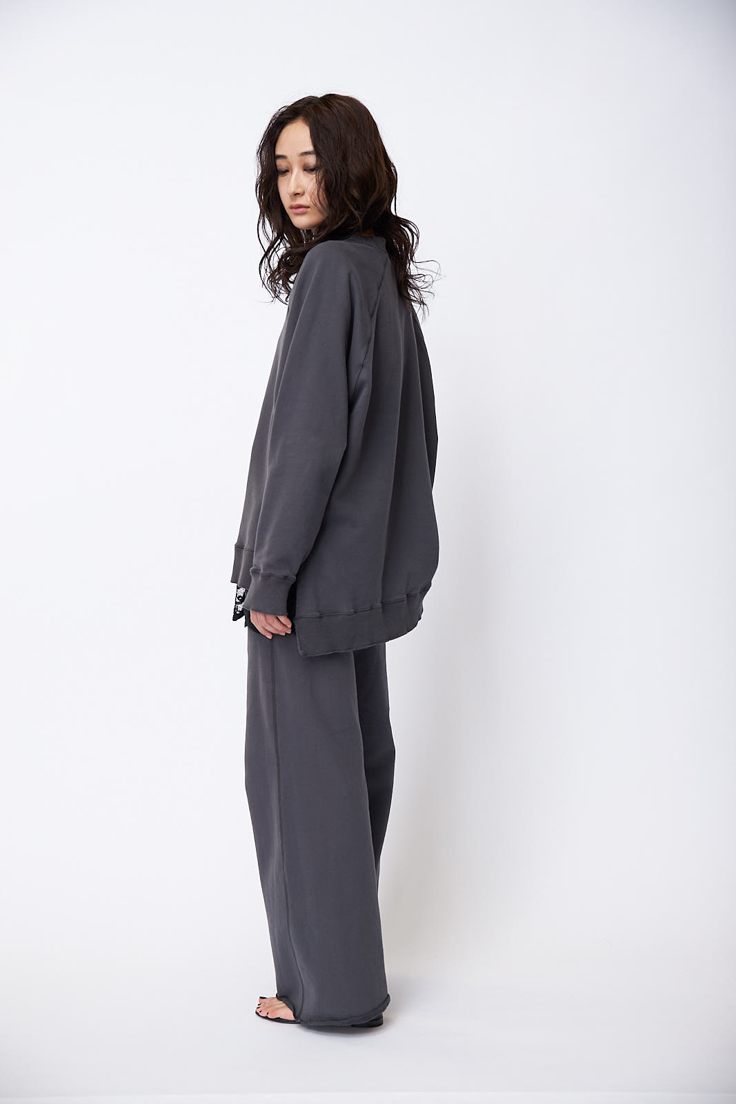 生地にソフトな風合いと肌触りの良さが魅力のDERABE SHAVE裏毛を使用したスウェットとパンツのセットアップ。