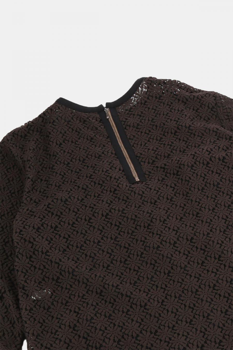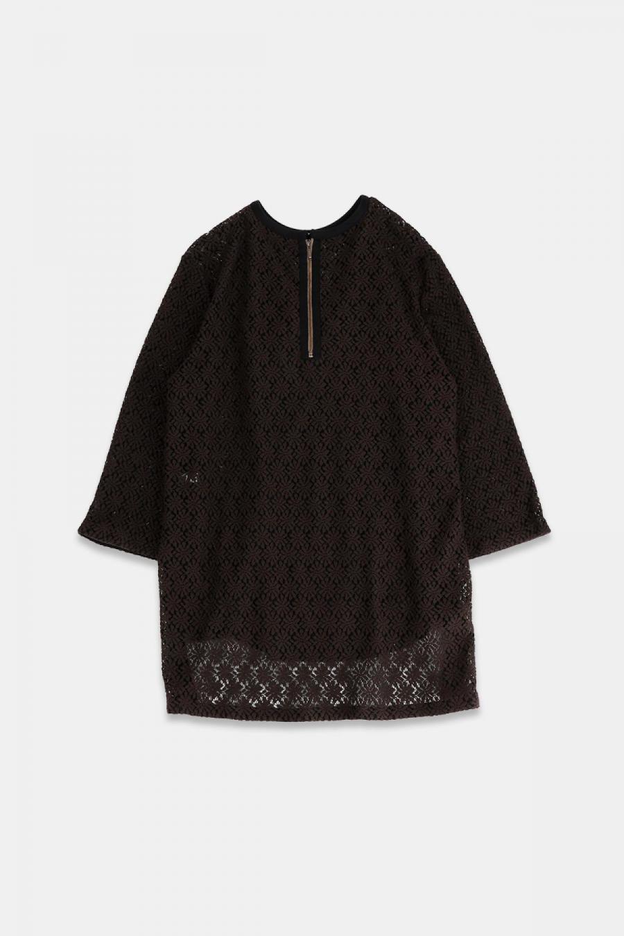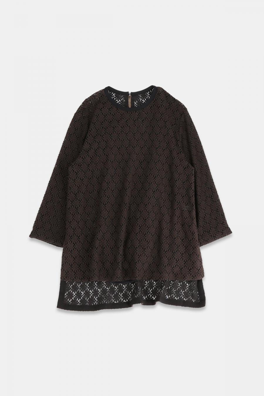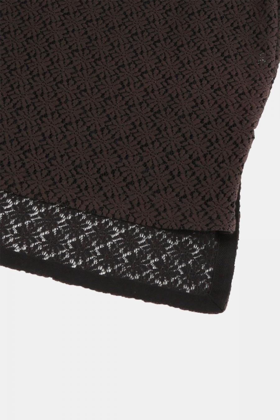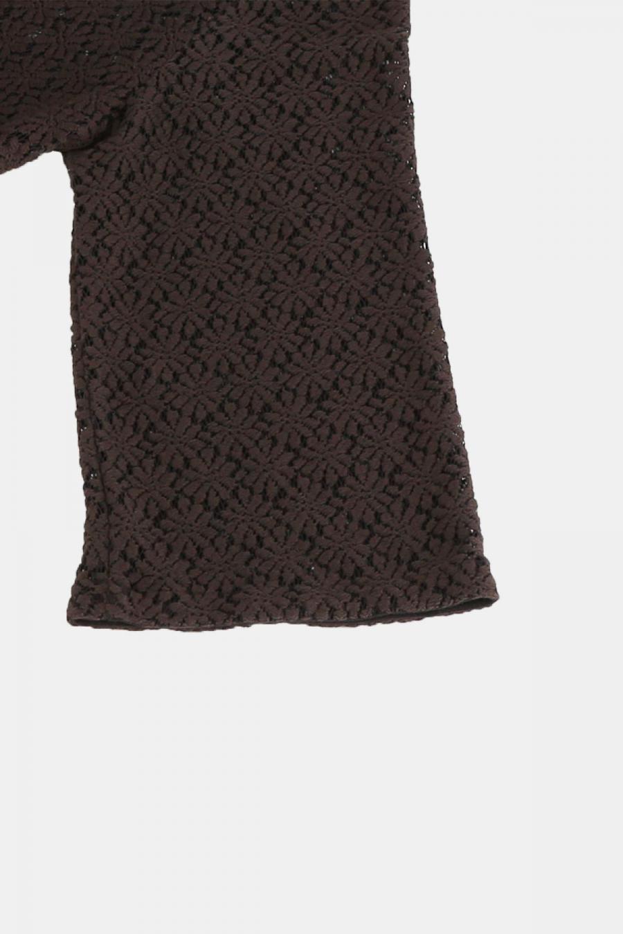 レースのシアー感とパンツのロールアップで抜け感を演出、トップスをパンツの上から出しラフなムードを作り上げているのも、このスタイリングのポイントです。